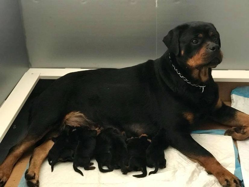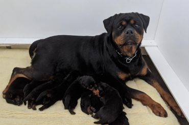 All of our breeding females are imports out of the top German bloodlines. Every dog in each of their pedigrees is a champion and/or IPO titled dog. We are not one of those breeders who breed females only with their own stud, we want to better the breed, and we strive to get even a better dog than the one we already have; we invest a lot of time, money, and effort to breed our females with only THE BEST Rottweiler studs in the world, no matter what the cost is. Before the breeding, we make sure that our females pass all health tests, OFA or foreign equilavent certification for hips, elbows, eyes and heart, and only use studs that have all these health clearances as well. You can just imagine how much it costs to prepare a female for a breeding, do all kinds of health testings, fly to Germany with a female, pay for the stud fees, hotels, ... best nutrition, vet bills, registration papers etc. No matter how much to charge for a puppy we barely brake even, sometimes female don't even get pregnant and we lose thousands of $ plus the time and our nerves. Then you probably ask yourself why we still do it, well our love and passion for Rottweilers is hard to explain with words. It's an exceptional pride and joy to raise and play with puppies; it's a dream come true, to be grown up and still be doing what made me the happiest when I was a kid, playing with puppies.