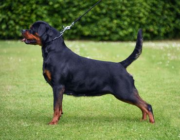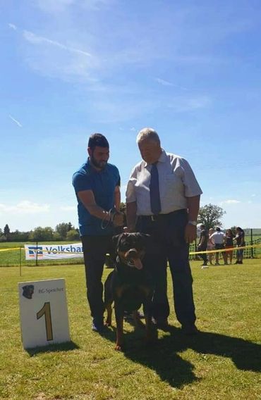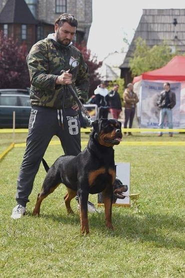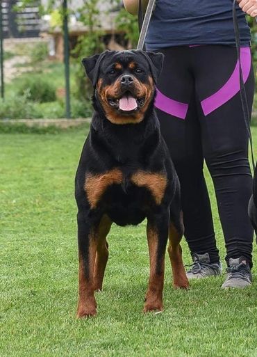 We don't just look at dog's appearance or pedigree when deciding on breeding: the dog MUST have a stable temperament. No matter how beautiful the dog is or how many shows the dog has won for conformation, if he/she has a weak temperament or is not healthy, the dog will not be bred. The first time buyers are most of the time confused with titles and short terms, and for them is the same if the dog is American AKC champion, or is Serbian Champion or is German champion. Any dog can collect enough points and eventually become AKC Champion, AKC is not part of the FCI and they have their ''own Rottweiler standard' where disqualifying faults are tolerated, like missing teeth, shy, fearful, etc. That's why we would never consider AKC dog for our breeding program . Rottweiler is a German breed, and German Rottweiler club set a Rottweiler Standard long time ago and set the most strict breeding rules, that we abide and follow. If you are a first time buyer you would need to do you homework and find an ethical German Rottweiler breeder that you can trust!